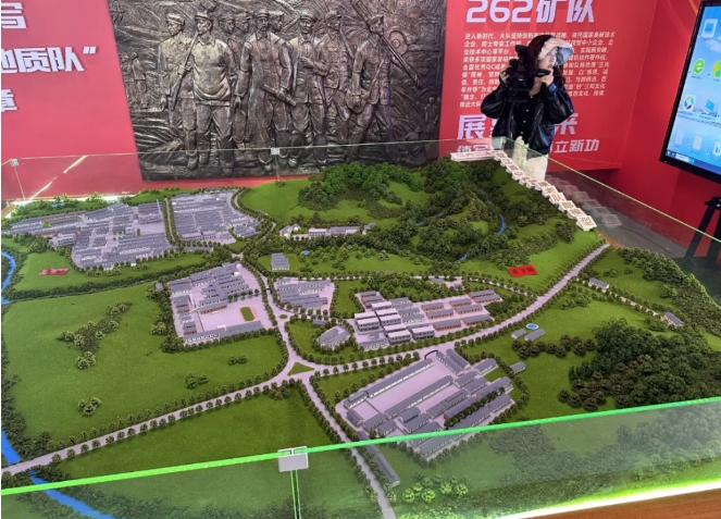 这座耗时半年打造的沉浸式沙盘,通过声光电技术重现了勘探队员"帐篷为家、罗盘指路"的奋斗岁月。作为262原址首个核地质系统实景复原项目,其3D打印工艺精准还原了24年前大队撤离前的社区原貌。从学校、医院、商店、职工宿舍、办公楼等场景一应俱全,逼真还原并呈现了1972年原华东262大队进驻雪塘村后的生活与工作场景。262队史馆自建成以来,一直致力于收集、整理和展示262大队的历史资料与实物,成为传承地质文化、开展爱国主义教育的重要基地。